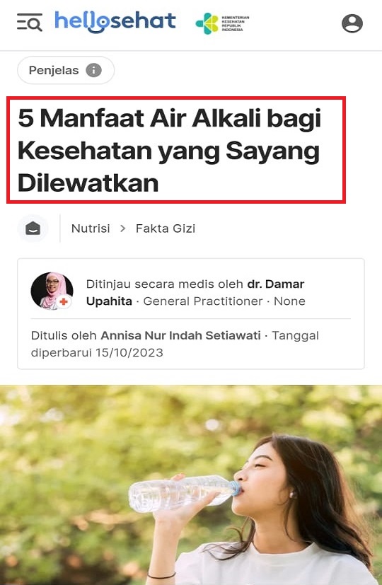 Kedua, HYDRO9+ mengandung Mineral Alkali Asli, sehingga ketika diteteskan pada air yang akan kita minum, kita mendapatkan manfaat air mineral alkali yang maksimal dan telah mendapatkan izin BPOM.